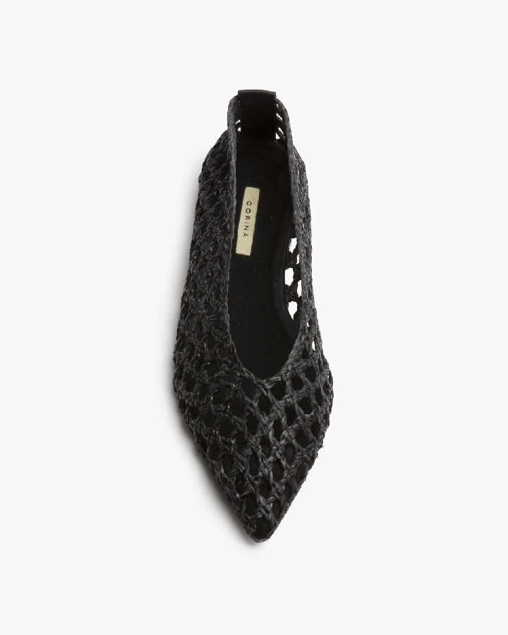 Bailarina plana de la marca Corina. Corte trenzado. Acabado en punta. Escote redondo.