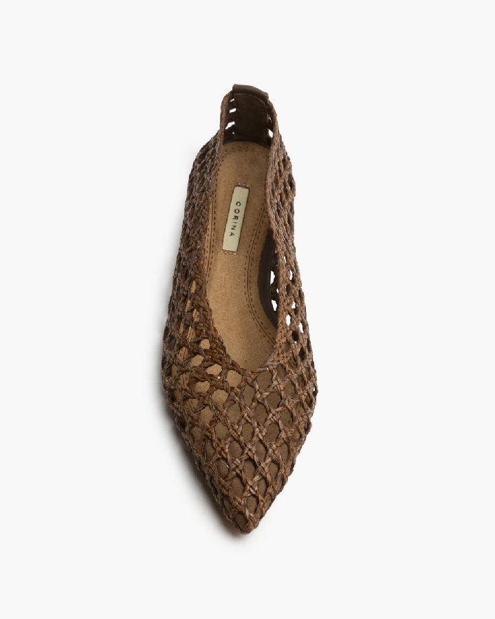 Bailarina plana de la marca Corina. Corte trenzado. Acabado en punta. Escote redondo.