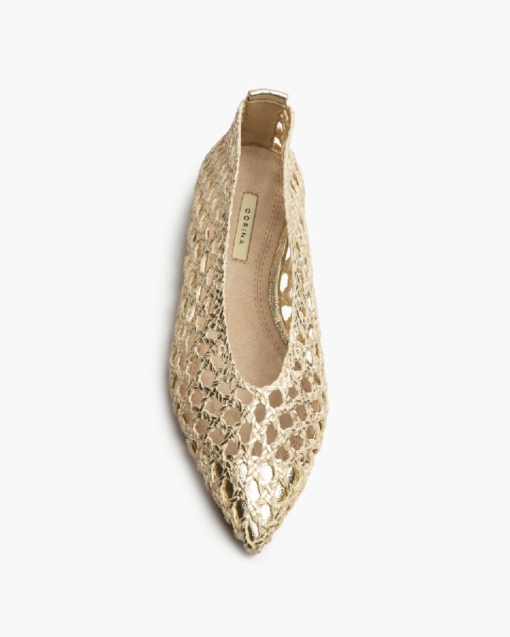 Bailarina plana de la marca Corina. Corte trenzado. Acabado en punta. Escote redondo.