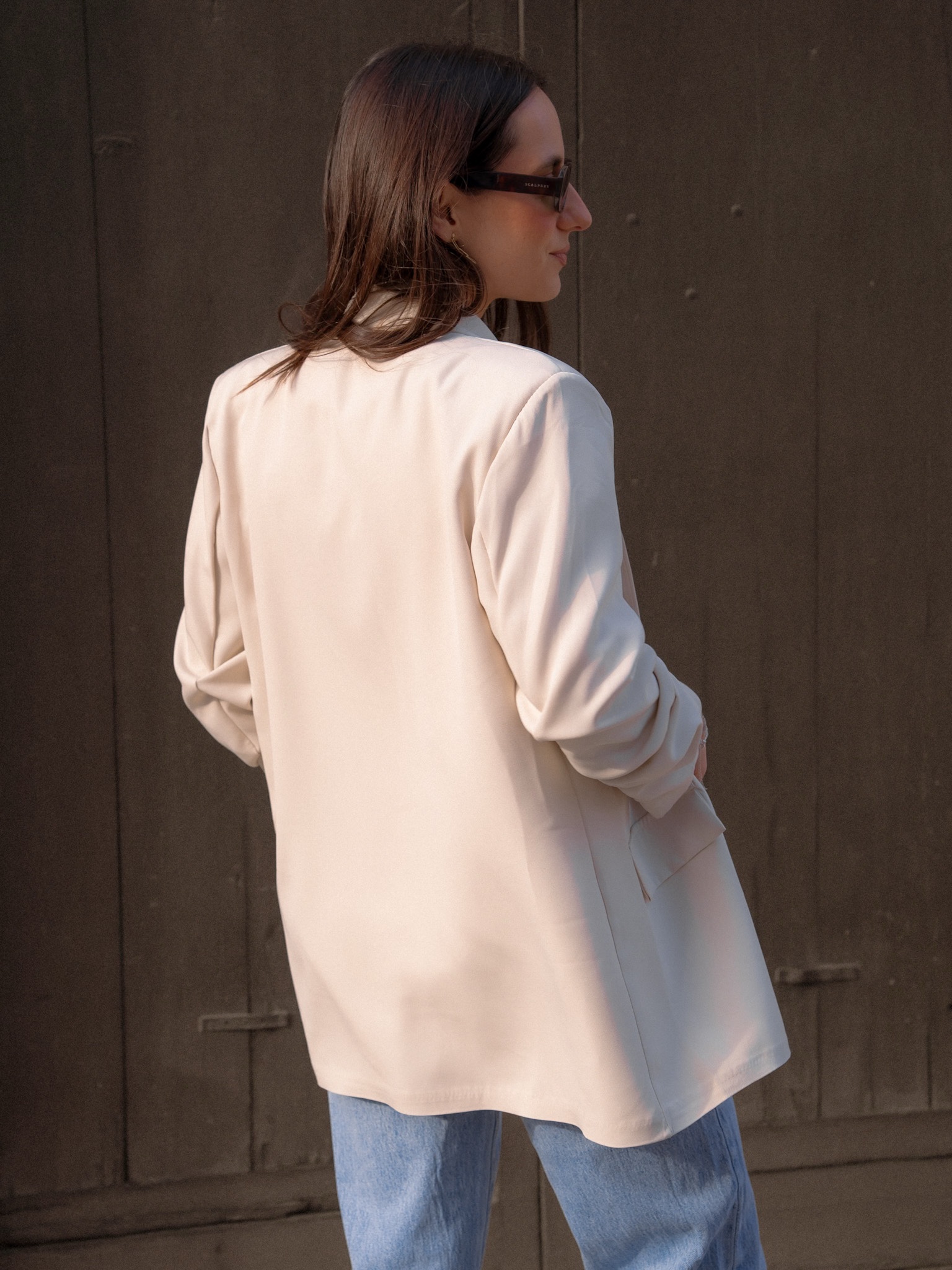 Blazer oversize con hombreras y manga fruncida. Forro interior a tono.