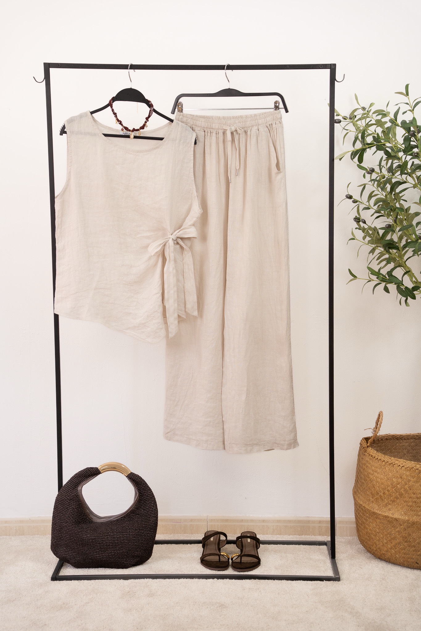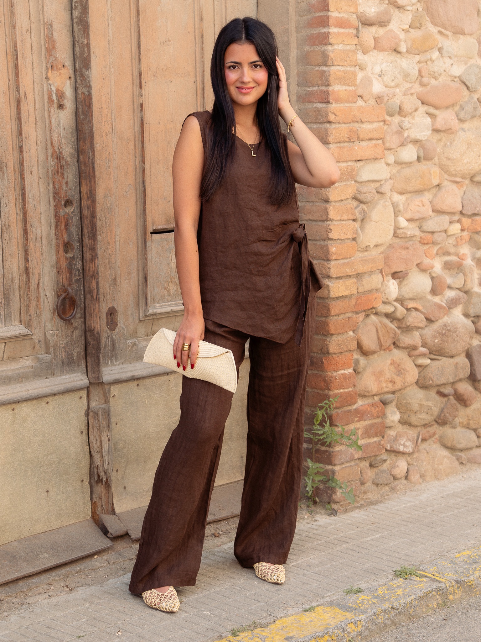 Blusa de lino con lazada lateral. Manga sisa. Talla única, da desde la talla 38 hasta la talla 44.
