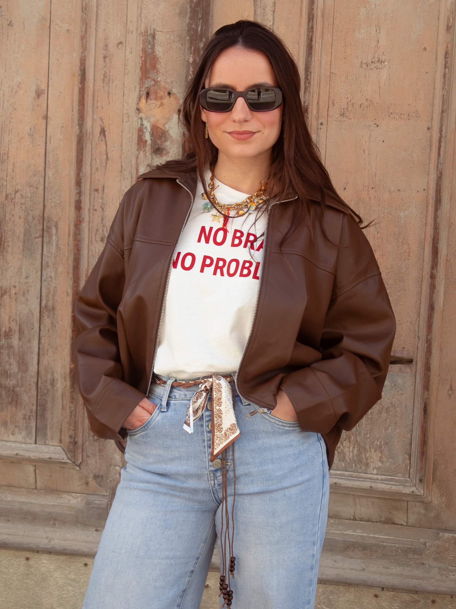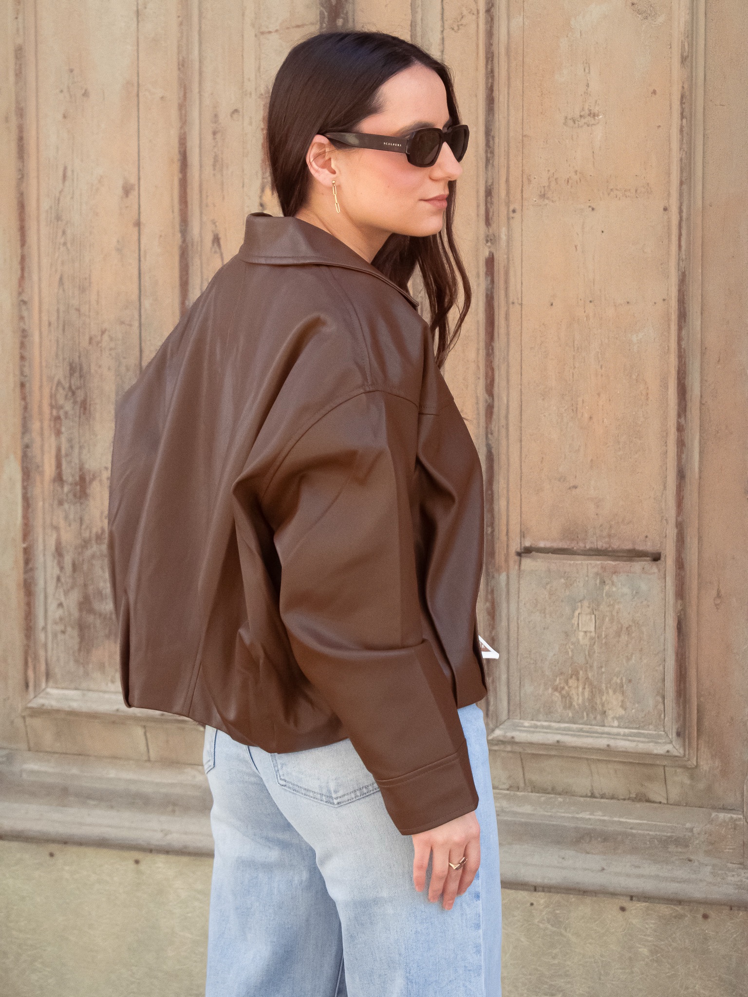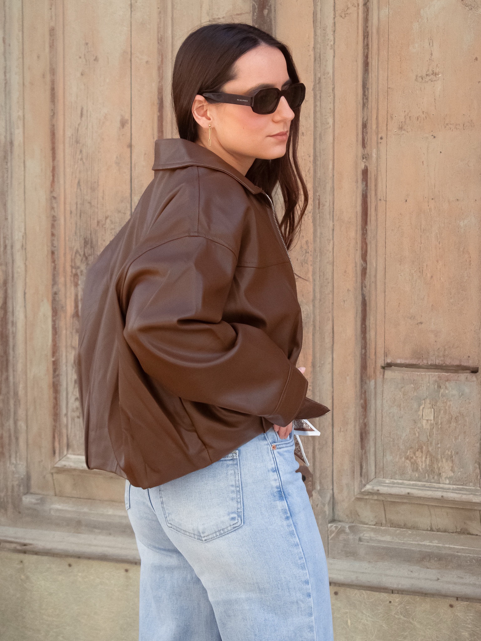 Cazadora de polipiel con forro interior a tono. Bolsillos laterales. Cierre con cremallera metálica.