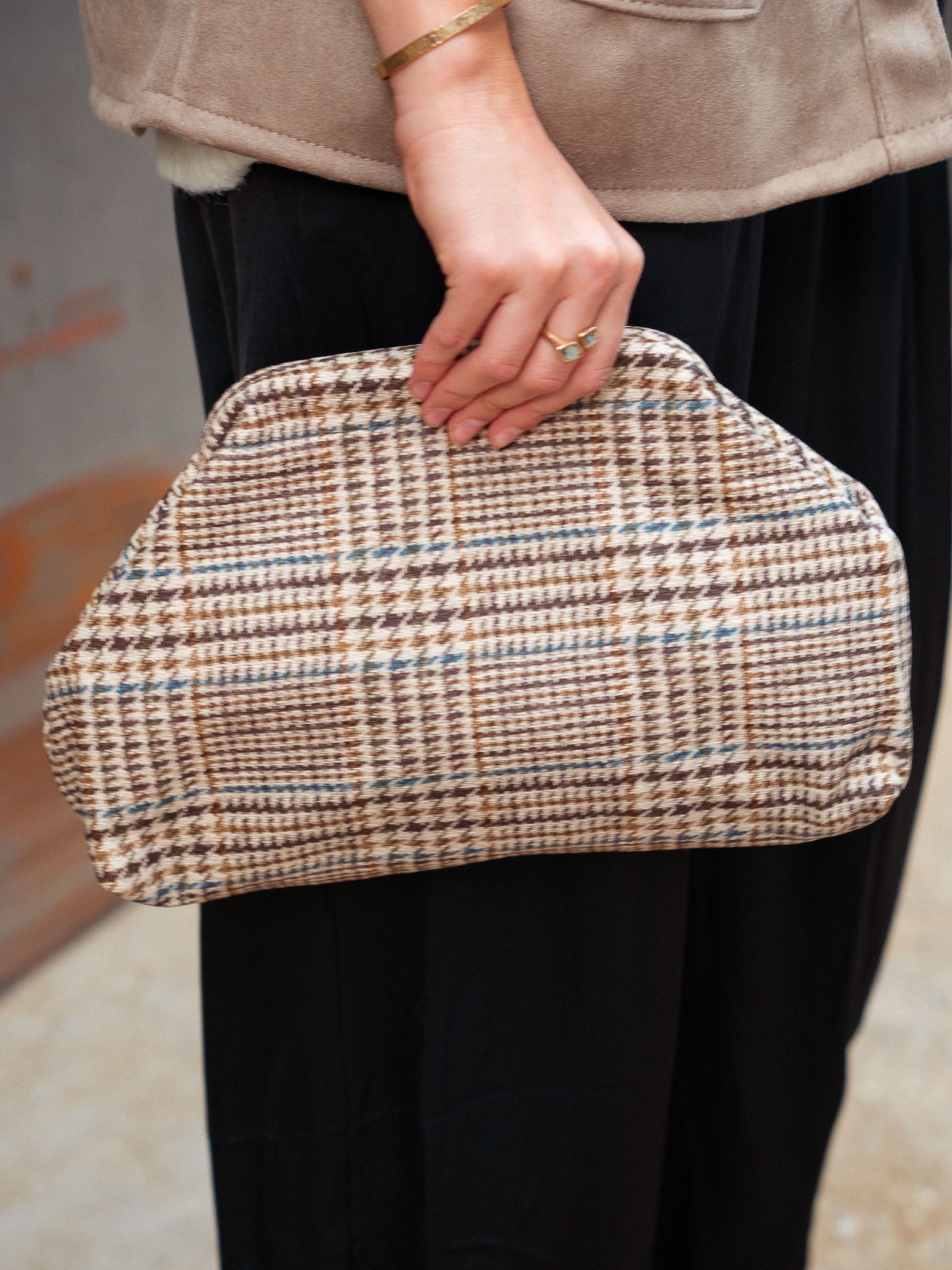 Bolso tipo clutch. Tiene asa para poder llevarlo al hombro y en bandolera.