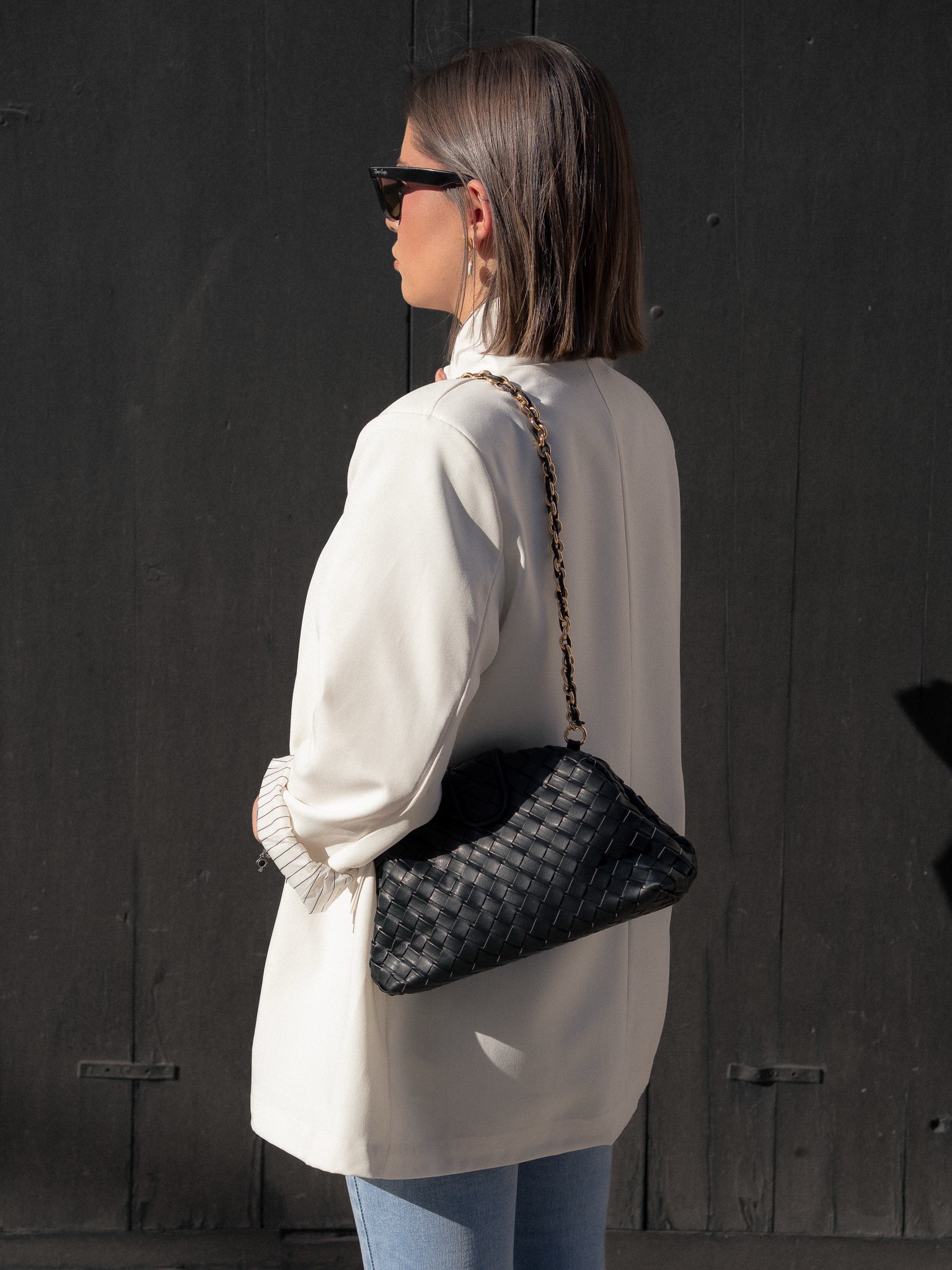 Bolso tipo clutch con cadena para colgar al hombro y otra más larga para llevar en bandolera. Forro interior. Cierre con imán y solapa. Material sintético.