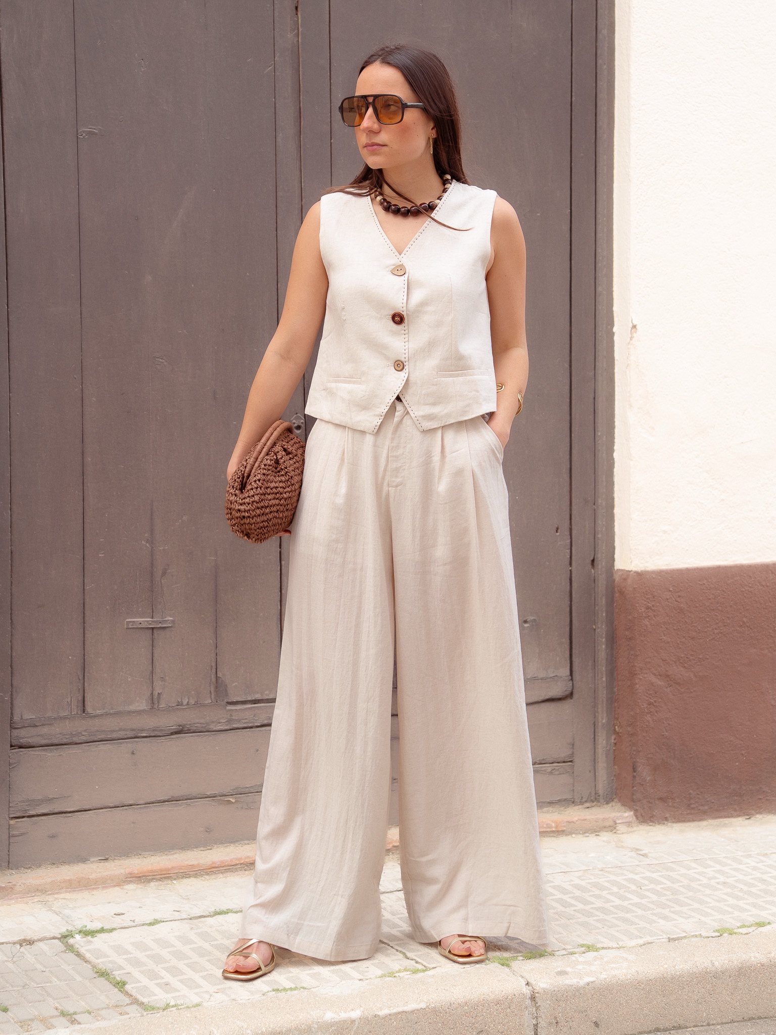 Conjunto de chaleco y pantalón.