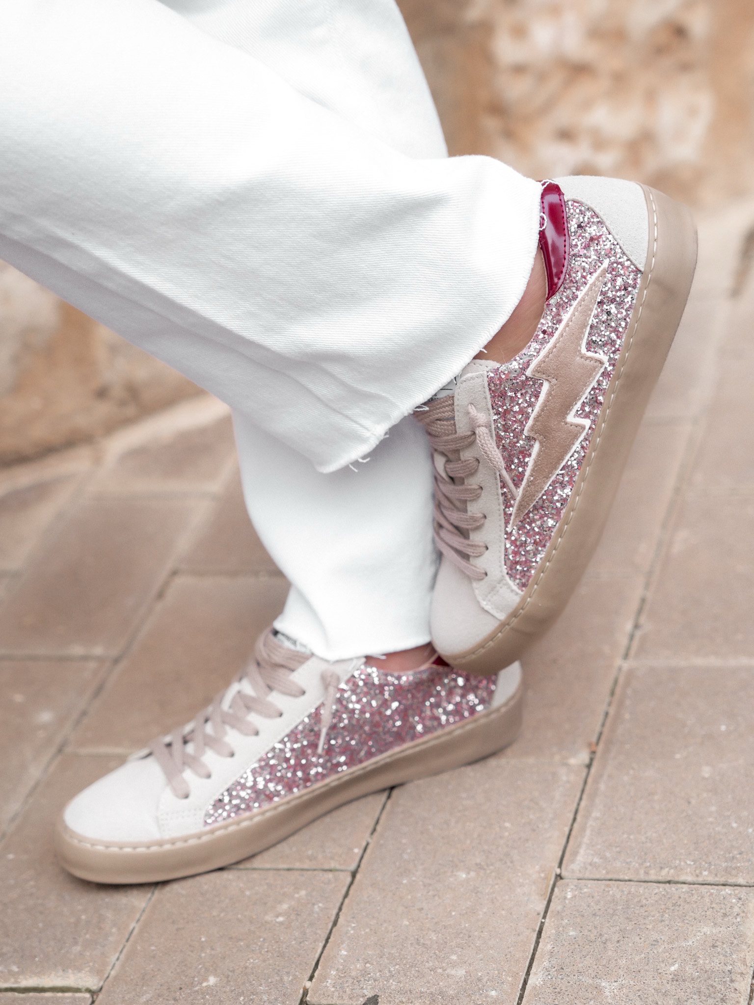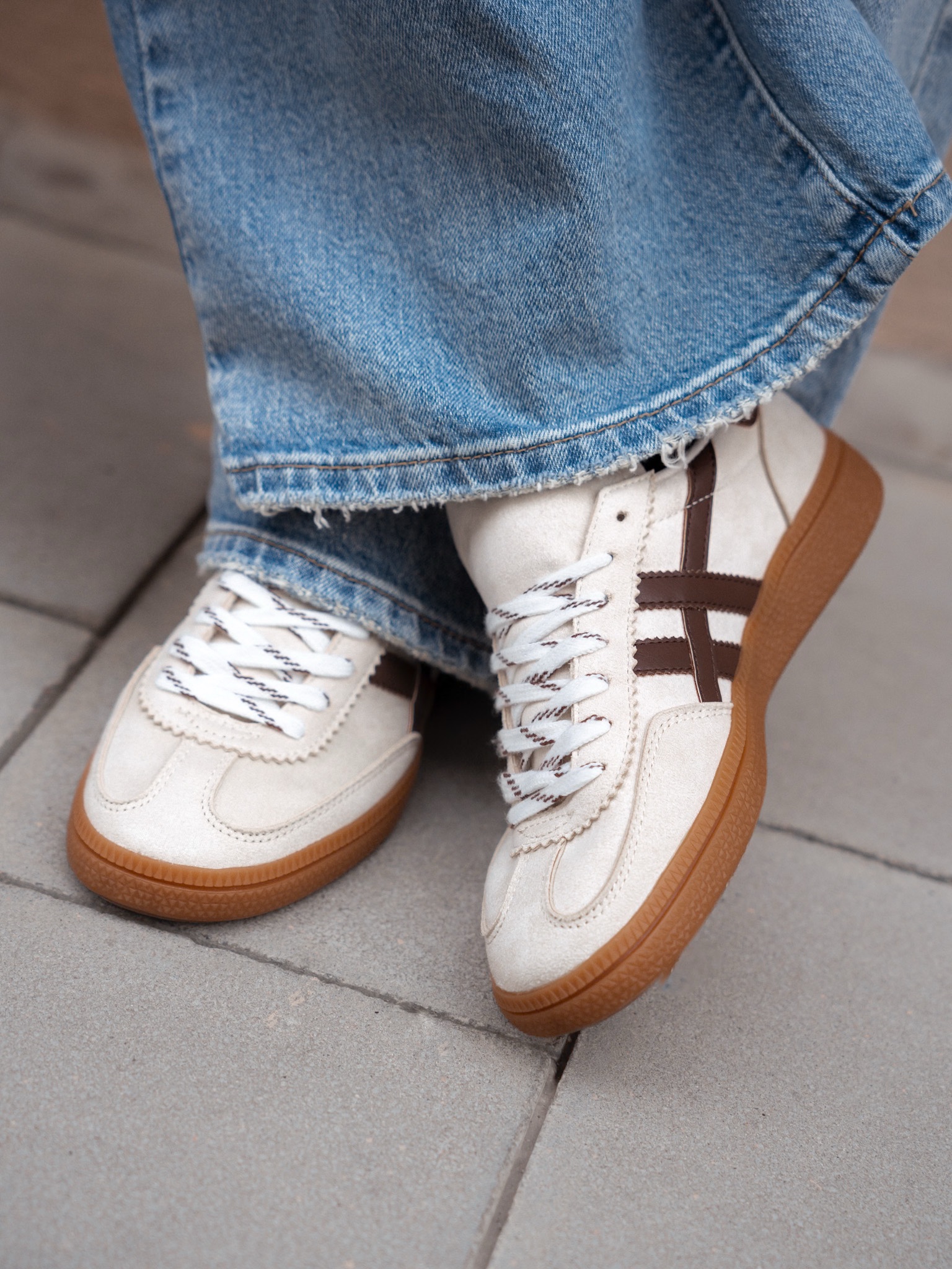 Deportivas arena combinada con chocolate, cordones bicolor.