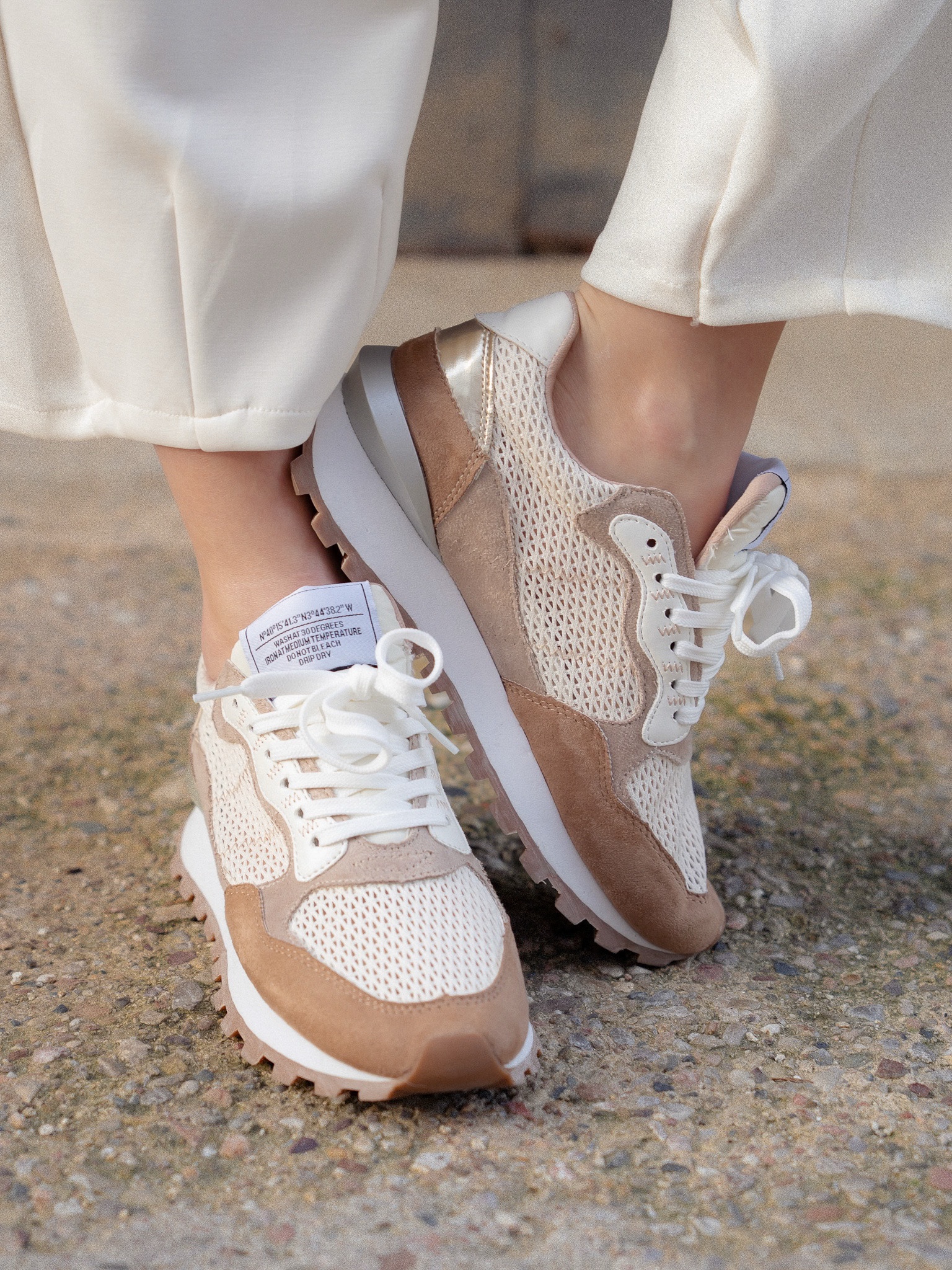 Zapatilla deportiva estilo running. Cierre mediante cordones de seis pasadas. Corte en combinación de materiales. Suela con plataforma dentada.