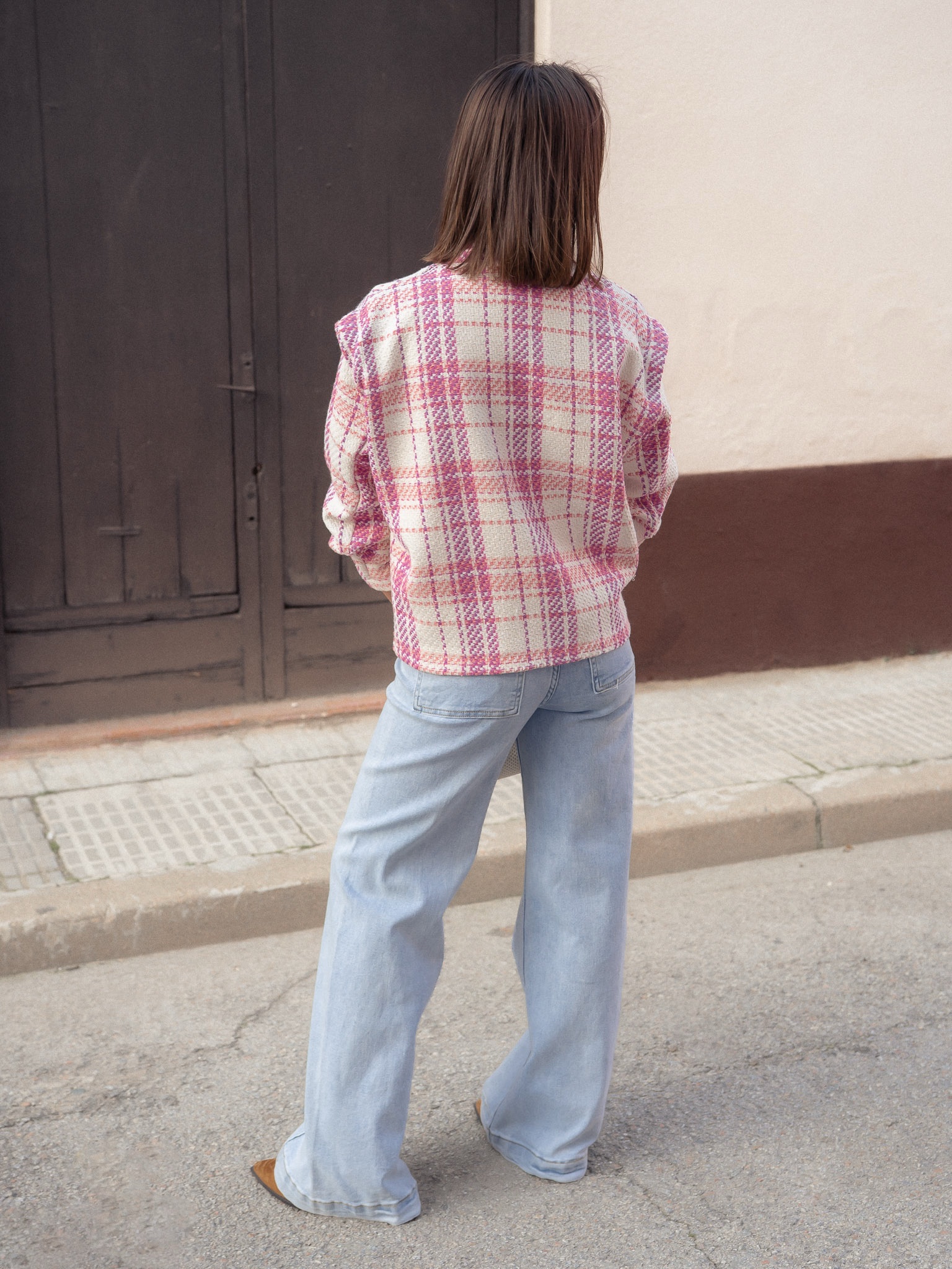 Jeans de tiro alto y pernera ancha.