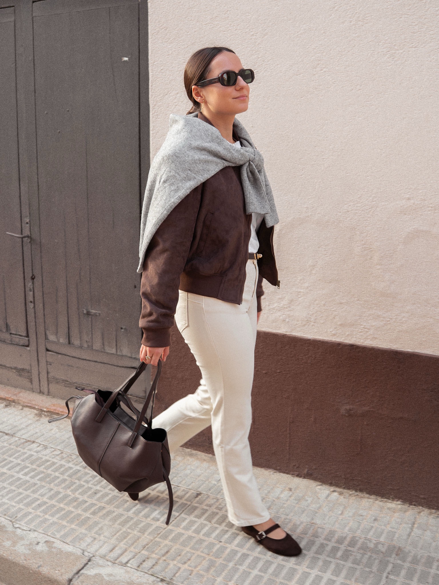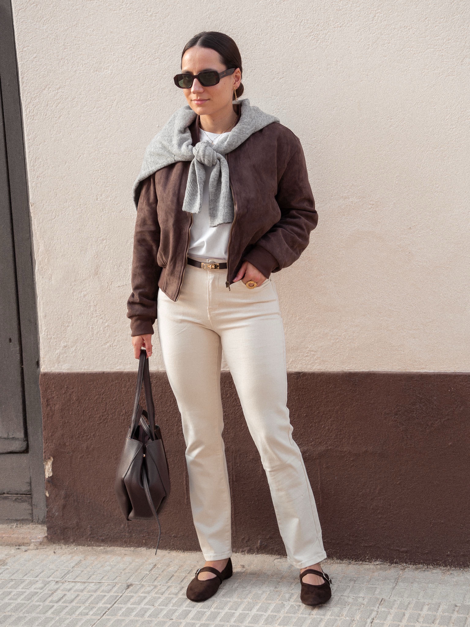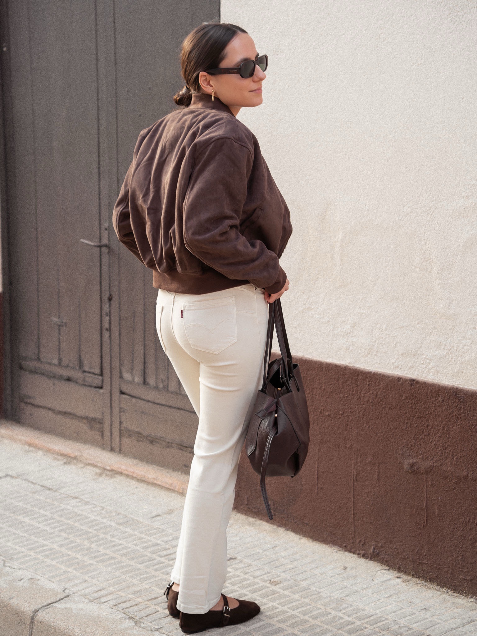 Jeans de tiro alto con trabillas y cinco bolsillos. Pernera recta. Cierre frontal con cremallera y botón metálico.