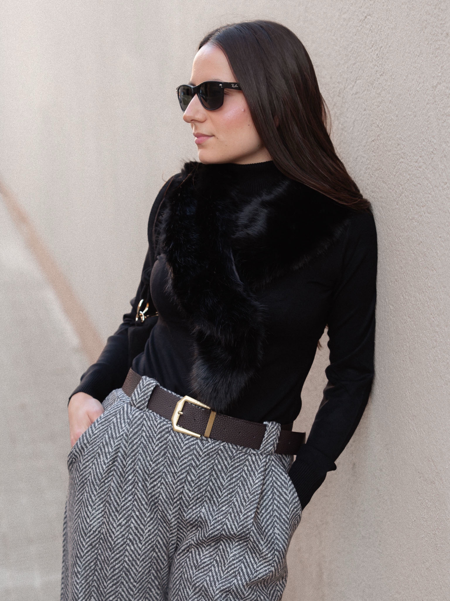 Jersey de cuello vuelto y manga larga. Acabados en rib.