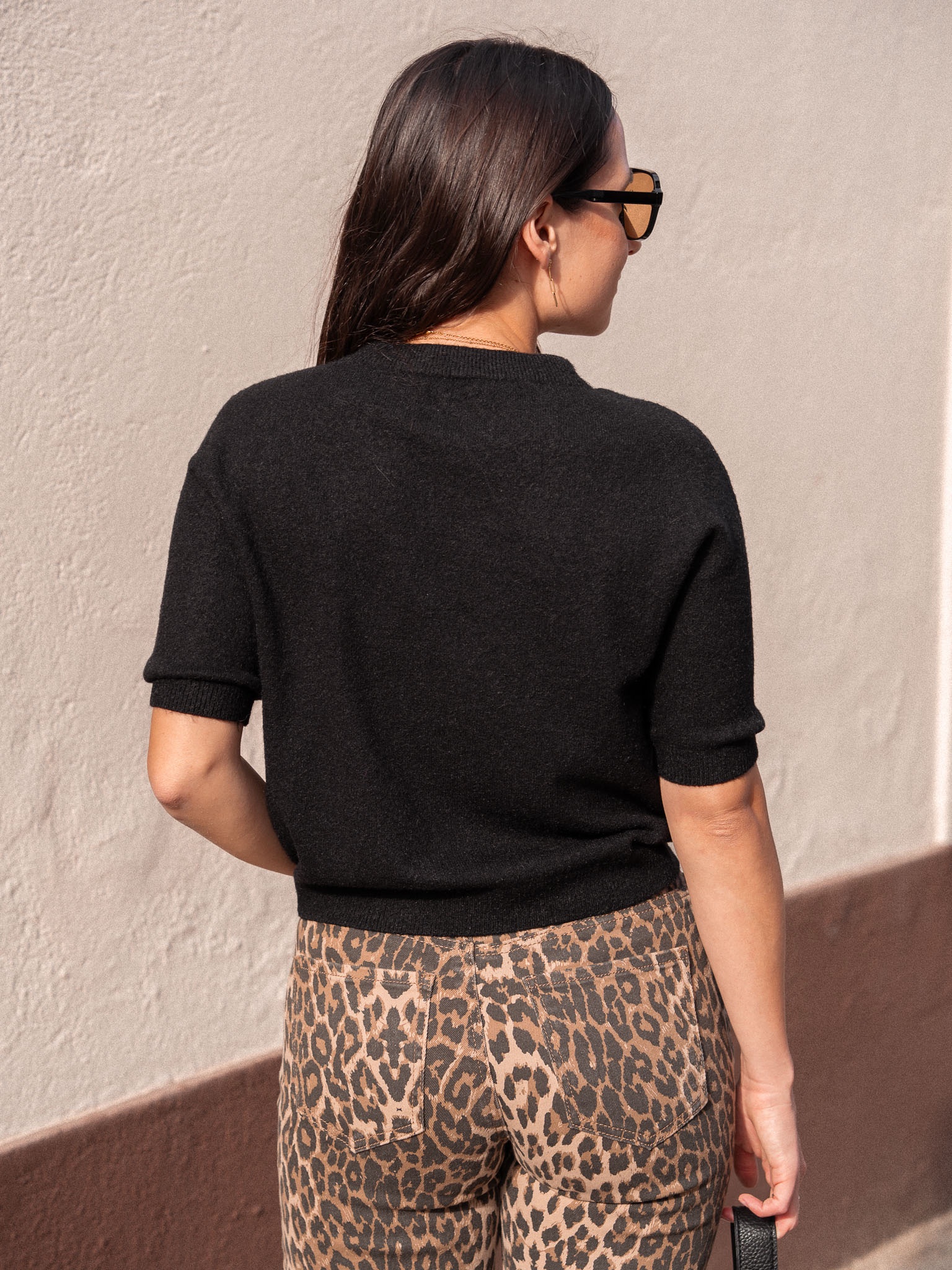Jersey de punto fino. Manga corta y cuello redondo. Tacto muy agradable.