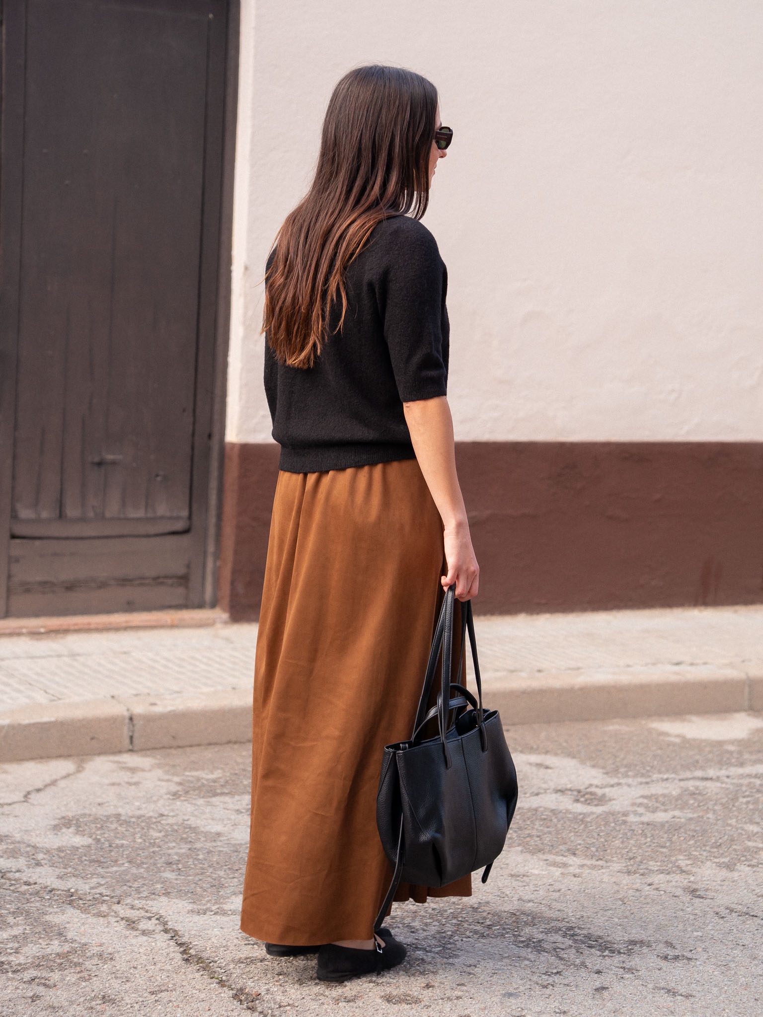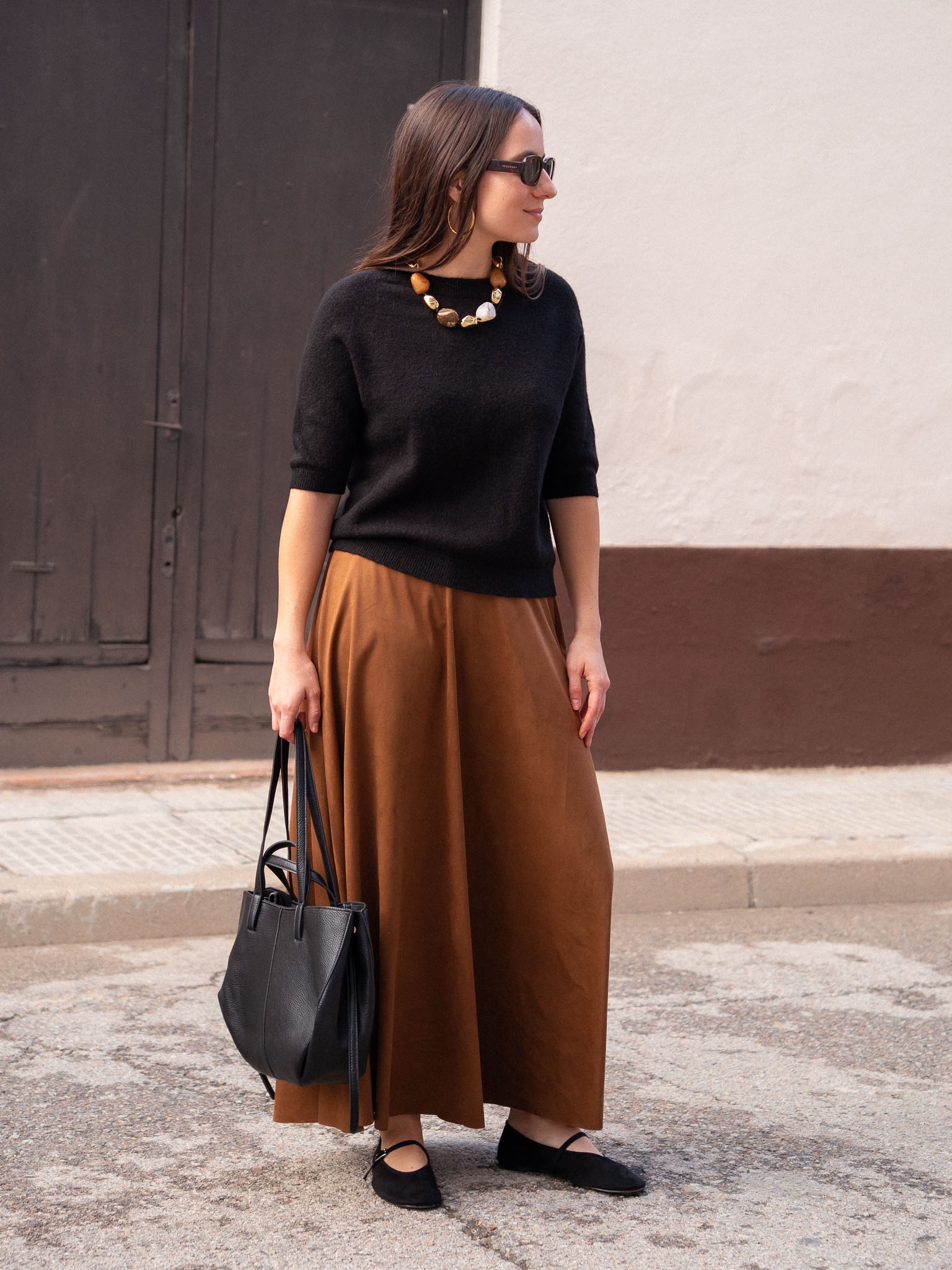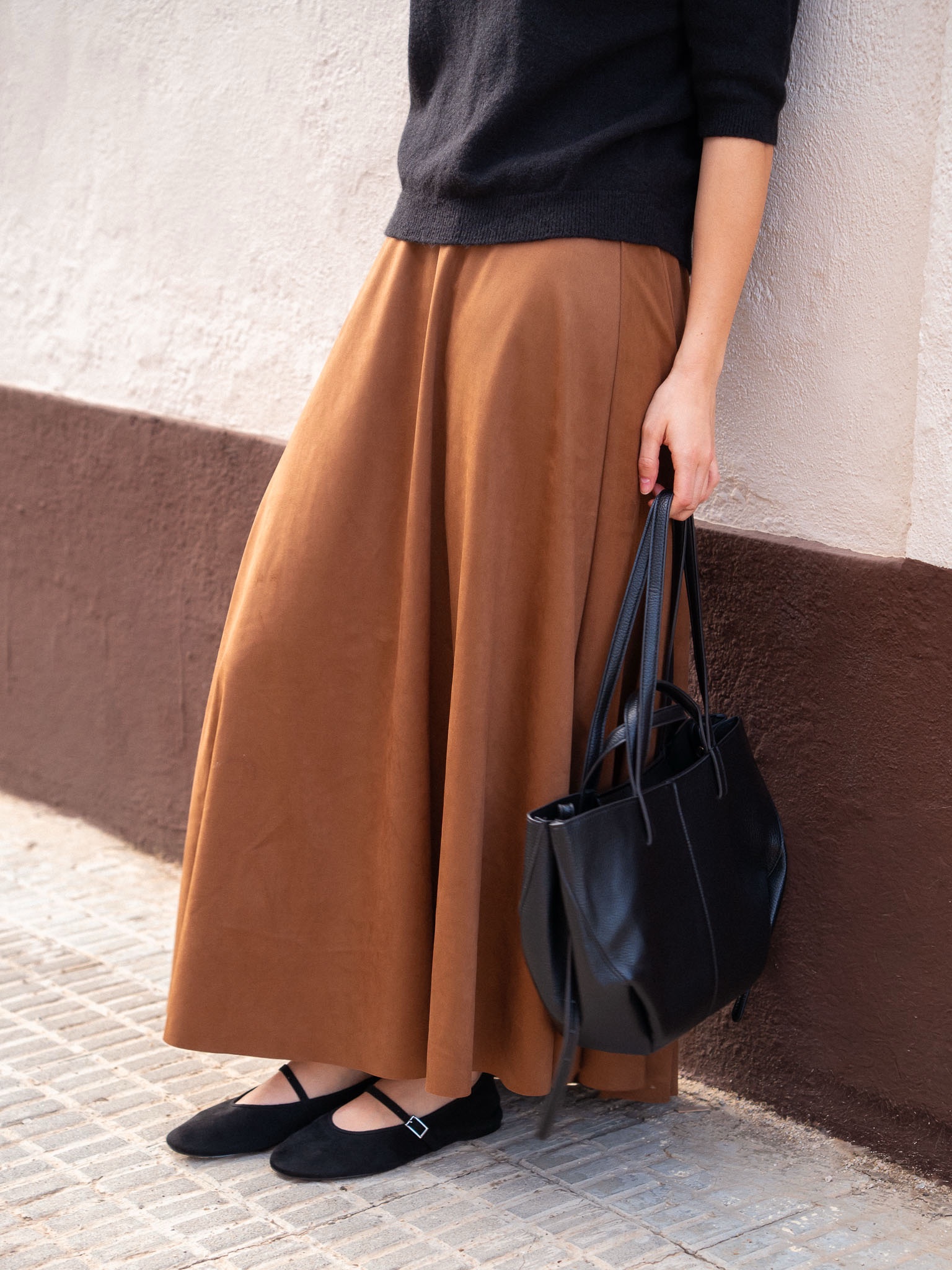 Falda larga de corte evasé. Confeccionada en antelina.