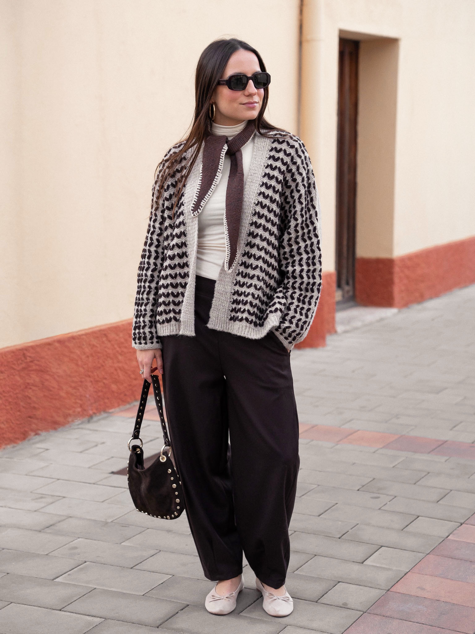 Pantalones estilo balloon tiro medio. Cintura con trabillas engomada. Bolsillos laterales.