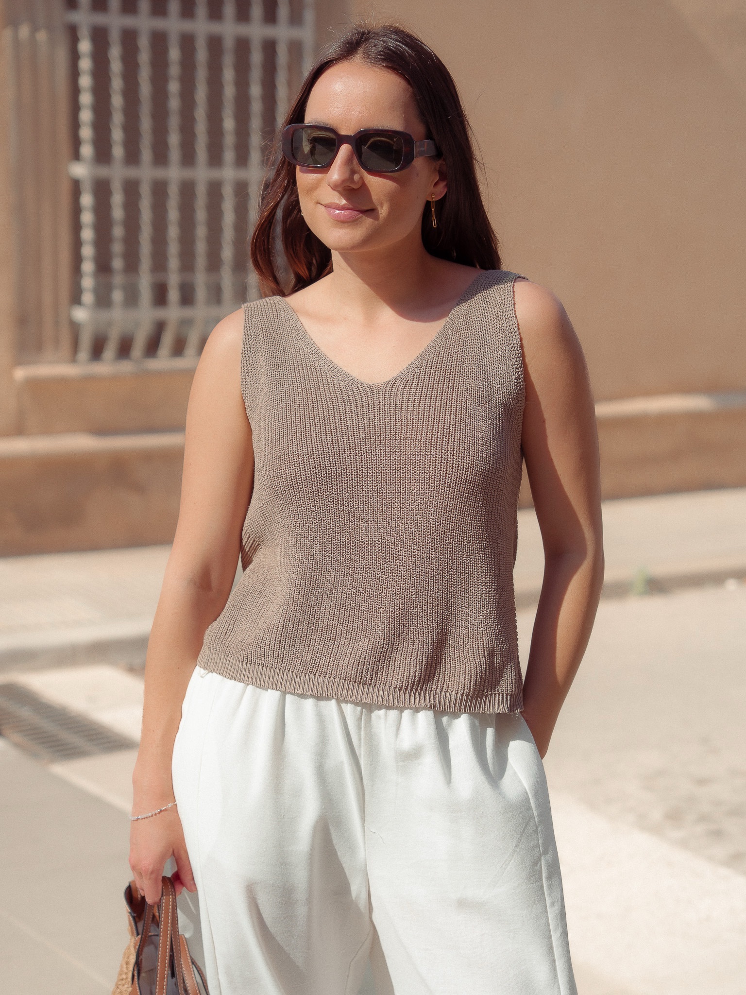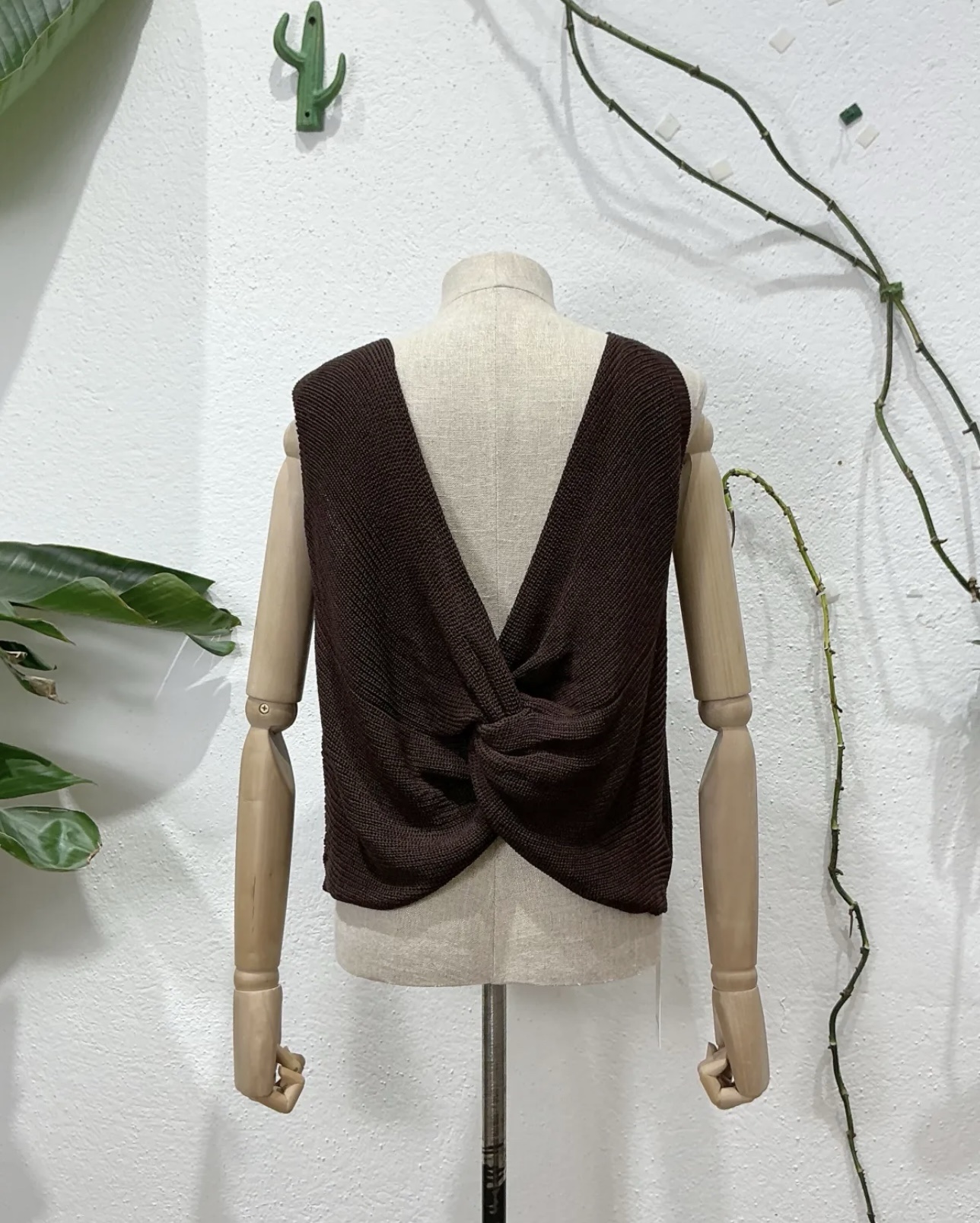 Top de punto de tirantes con detalle de nudo en la espalda.