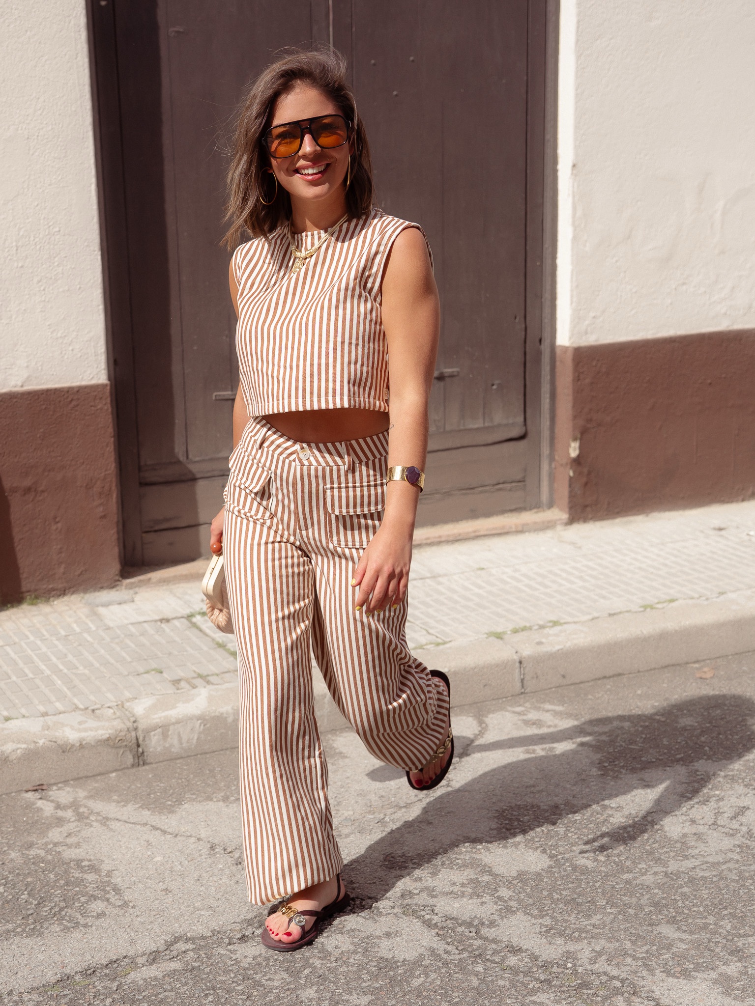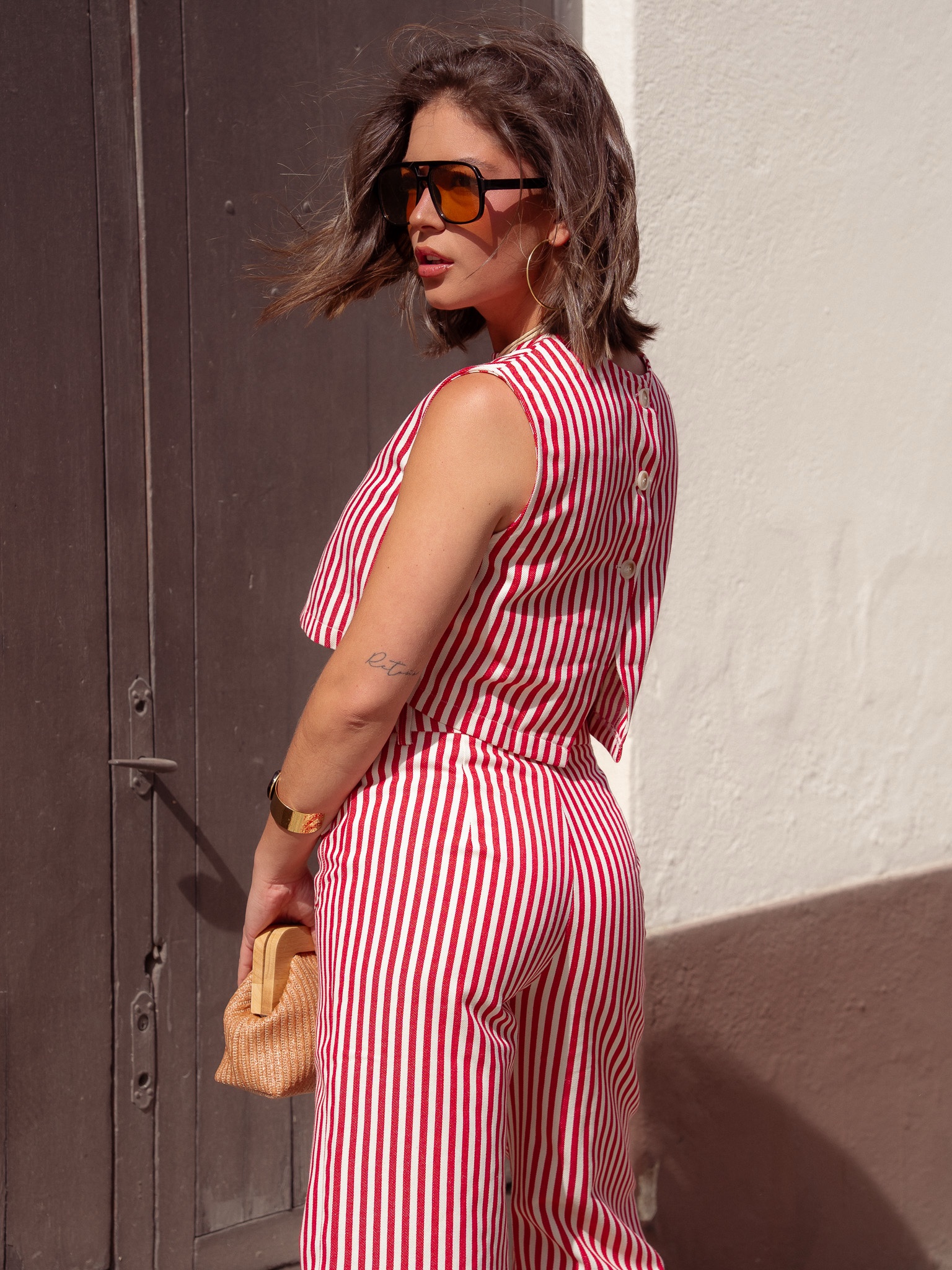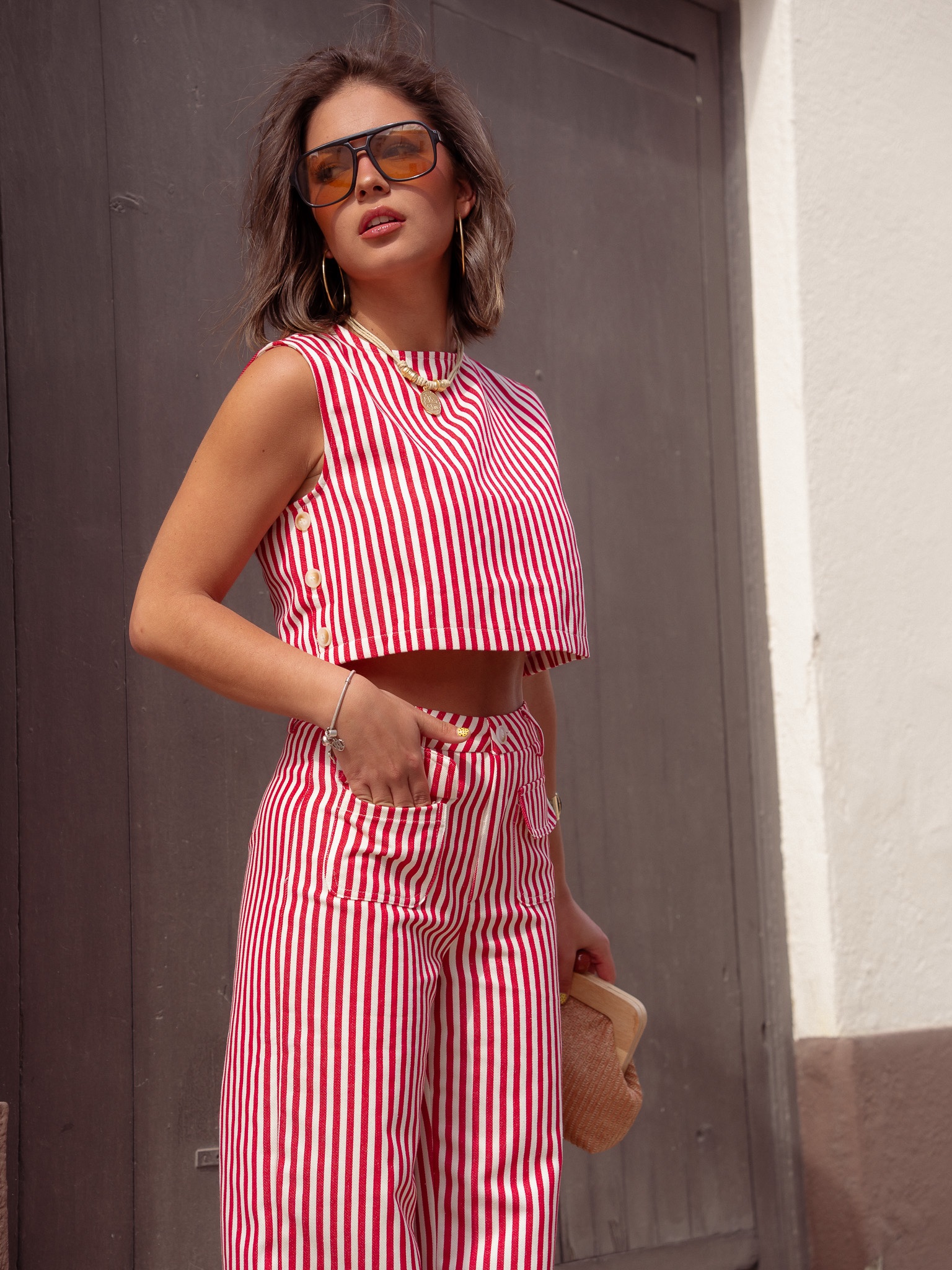 Top de rayas con manga sisa. Botones en laterales y espalda.