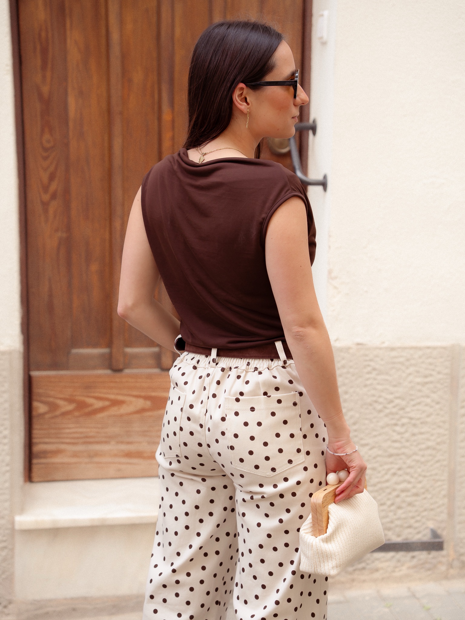 Top sin mangas con escote cascada. Tejido elástico.