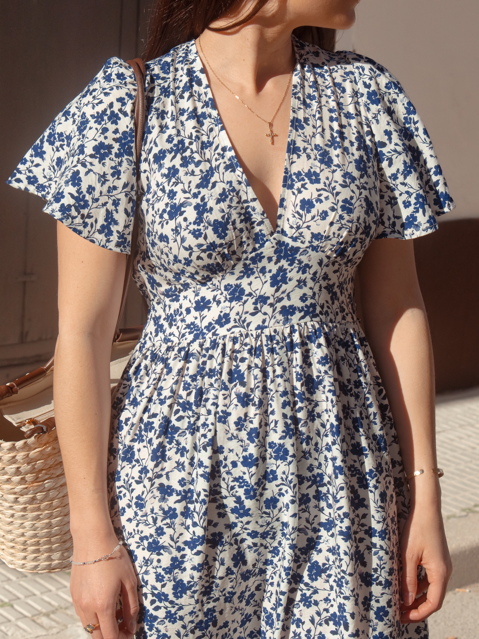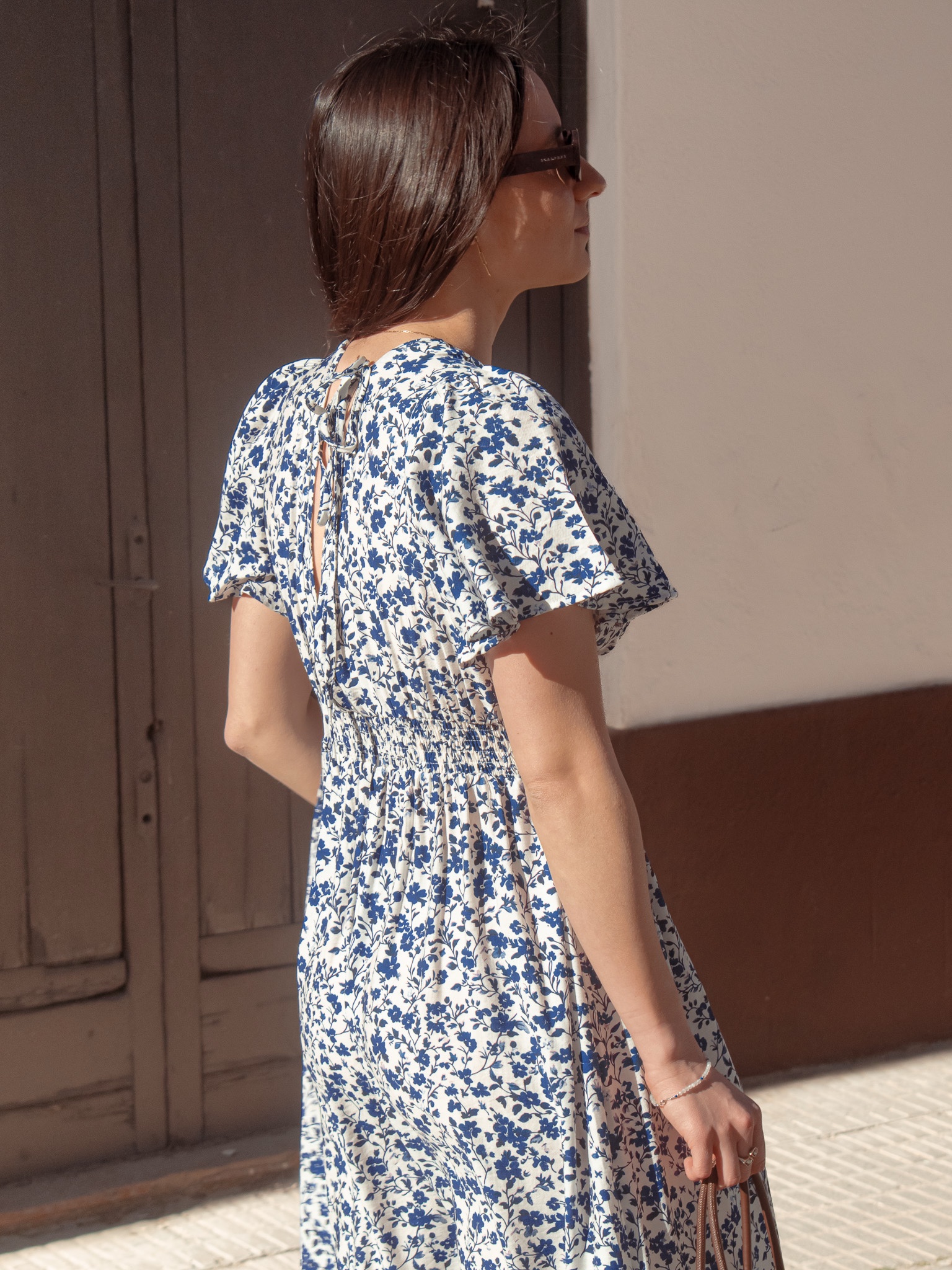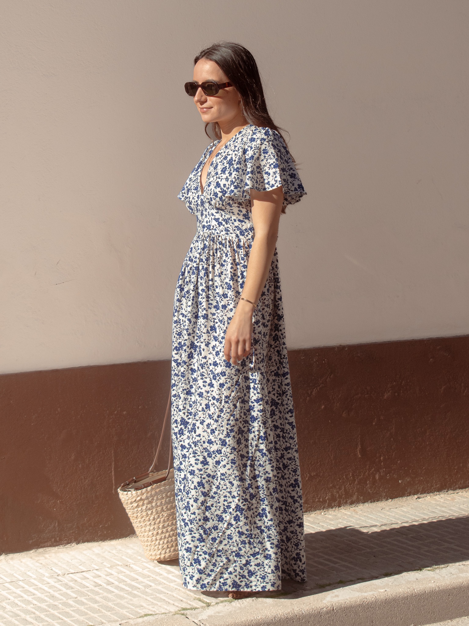 Vestido largo fluido con estampado floral.